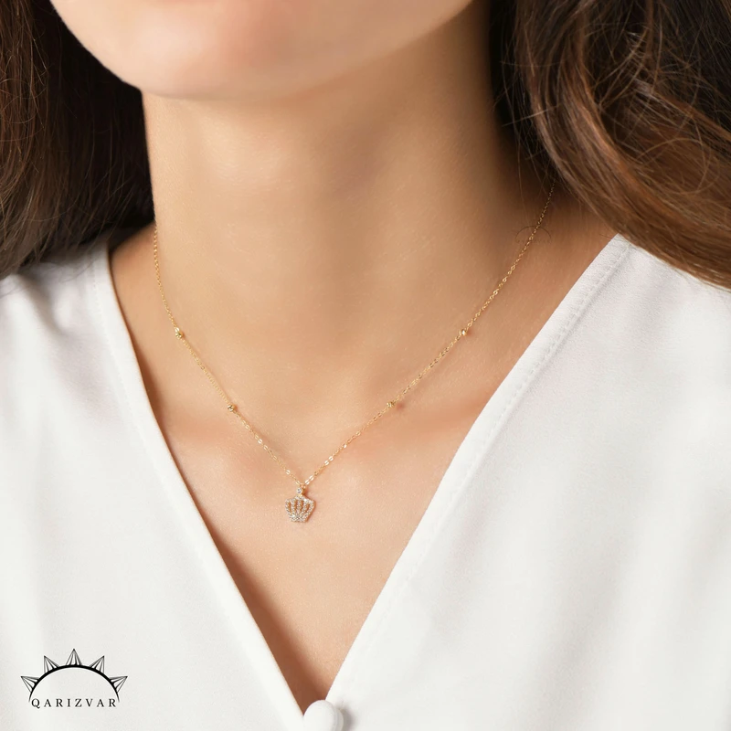 Collier Reine d’Or – Pendentif Couronne en Or 18K