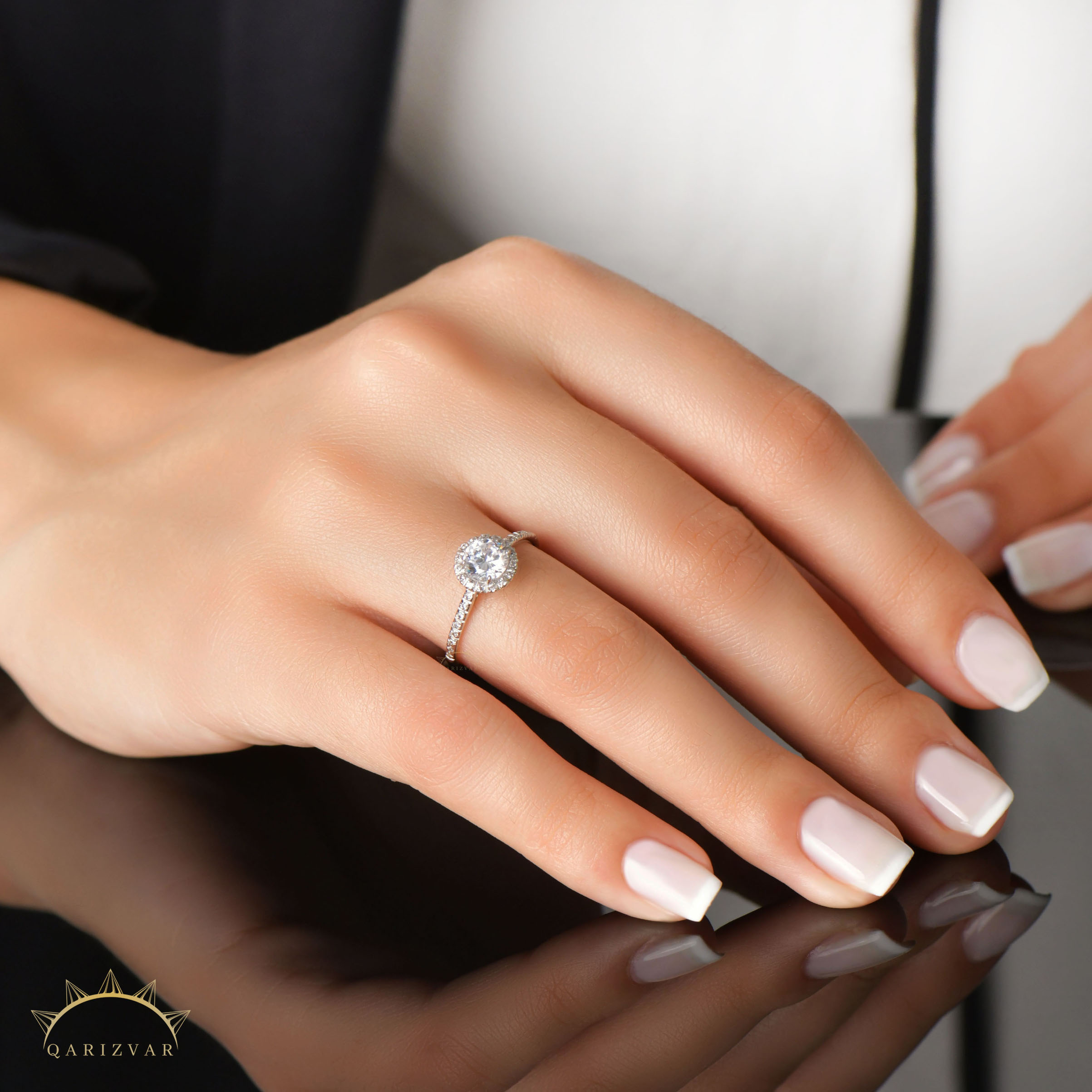 Bague Femme Or Blanc 18K – Solitaire Halo Zirconium